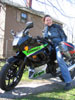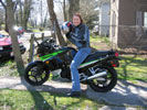 Summer is buying herself a motorcycle! A Kawasaki Ninja. She test drove it this afternoon, and I met her out to snap a few photos. Look how happy she is! VROOM.