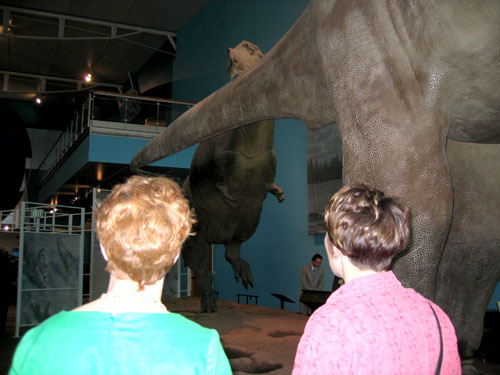 Corinne and Meredith check out the T-Rex.
