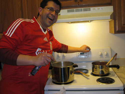 Tom cooked two kinds of chili! Traditional, and white.