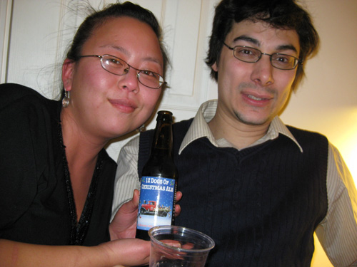 Yumi and Dan brought Thirsty Dog Brewing Company's 12 Dogs of Christmas Ale.