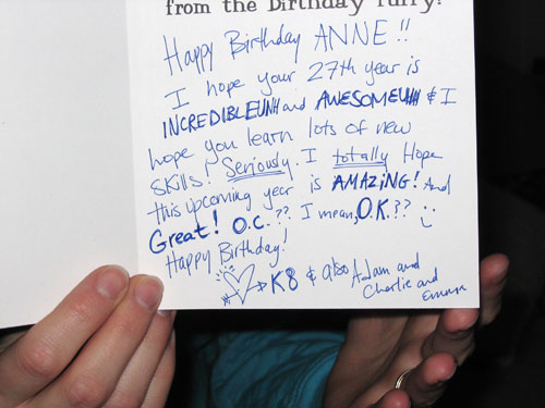 Happy Birthday Anne! I had had a little champagne the night before while writing the card.