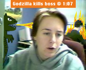 Godzilla. Kate helps. |